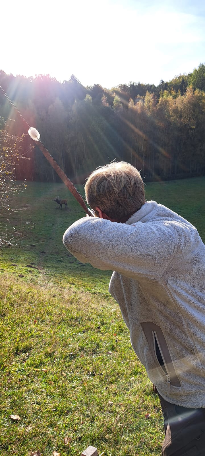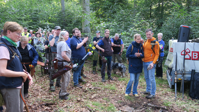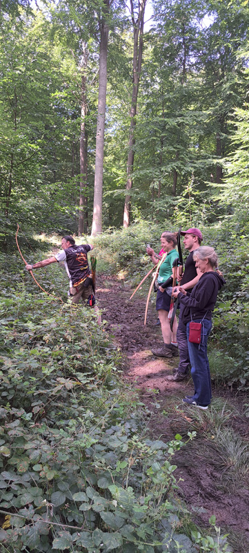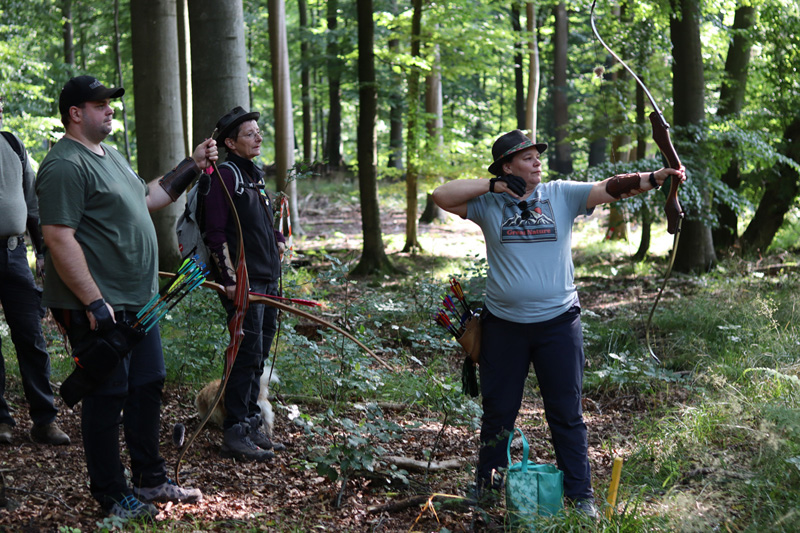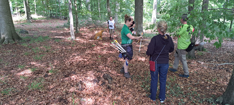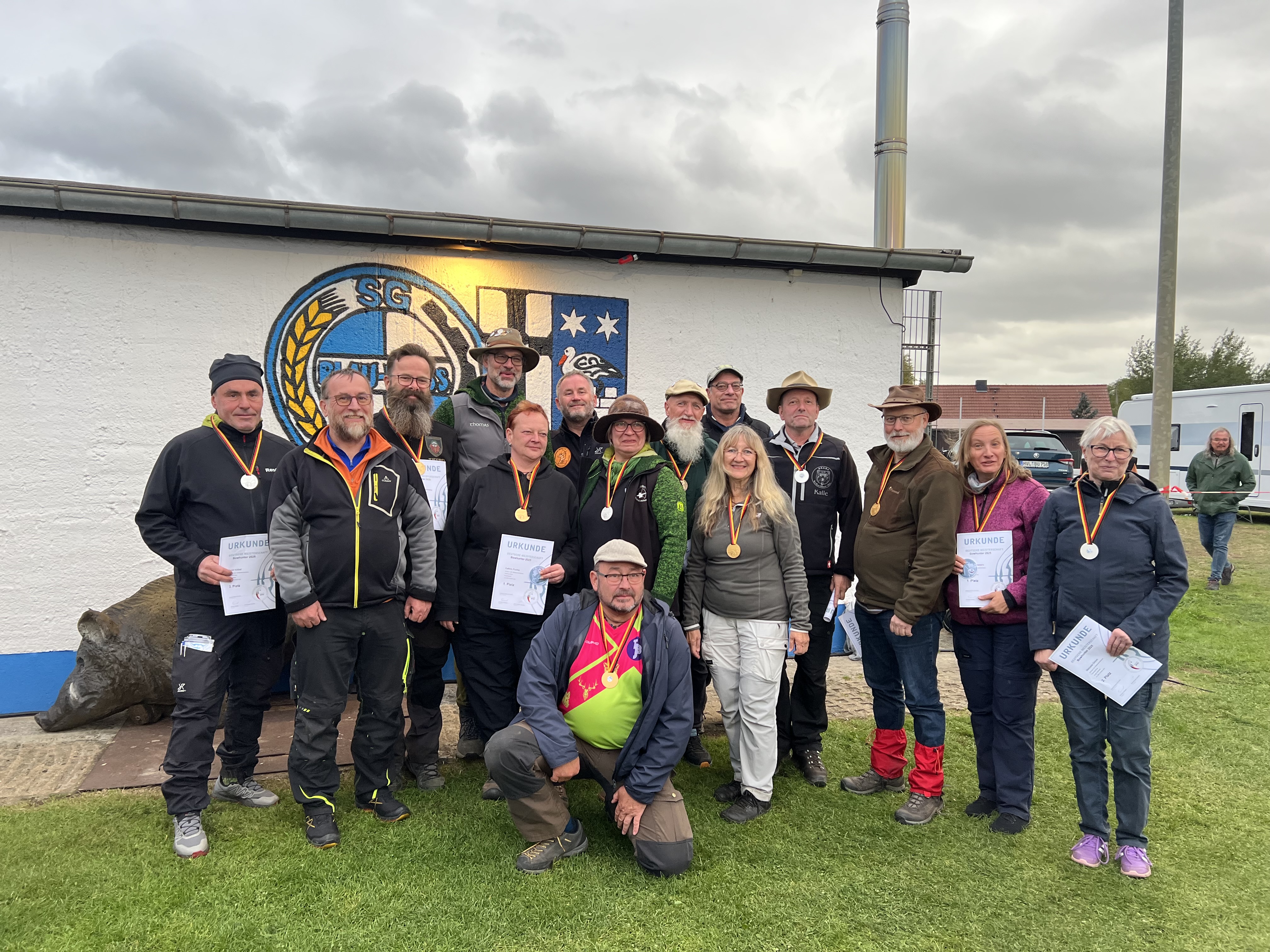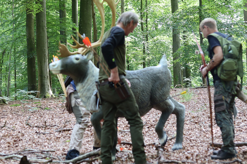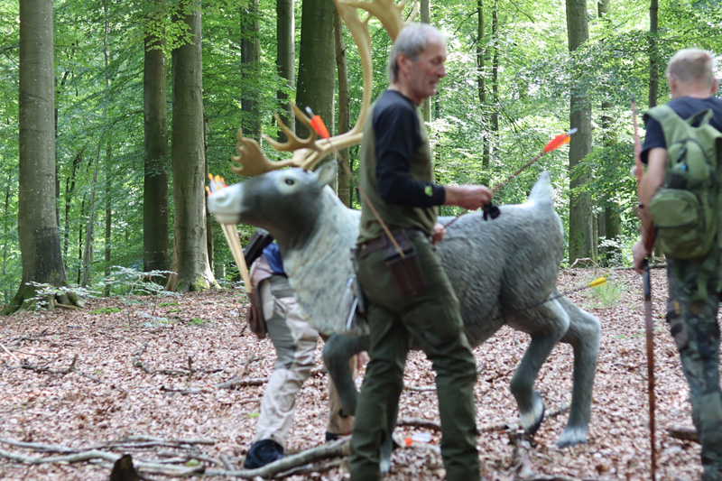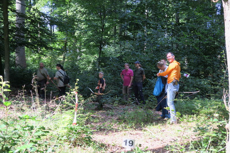 Für etwa die Hälfte der WuldoranerInnen war der Parcours, der nach privater Initiative im Frühjahr 2025 eröffnet wurde, „Neuland“. Zunächst ging es zur 3-Pfeil-Runde mit 25 Stationen, die - eingebettet in ein tolles, abwechslungsreiches Gelände mit wunderschönem Wald - alle durchweg begeistert haben. Schon bald soll die Nehmtener Runde noch weiter ausgebaut werden, denn ein ganzes Rudel neuer Tiere wartet nur darauf, in den Parcours gebracht zu werden. Nachdem die vier Gruppen ihre Runde gedreht hatten, versammelten sich alle für ein paar Spaßziele (Bogendarts, Pyramide 1-5, Rechenaufgabe und Enge Passe) noch einmal auf dem Einschießplatz.