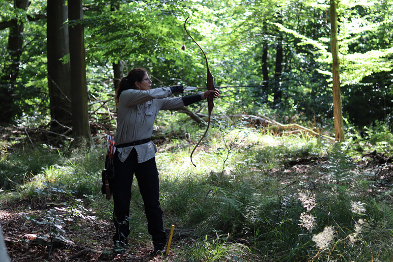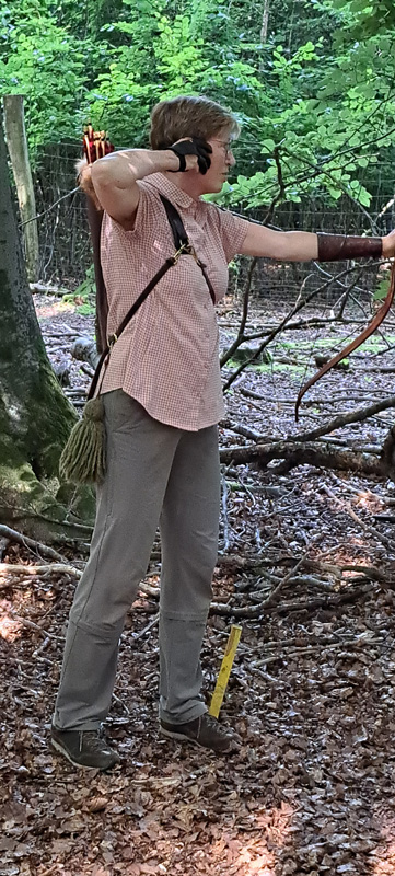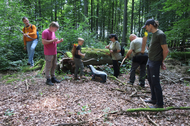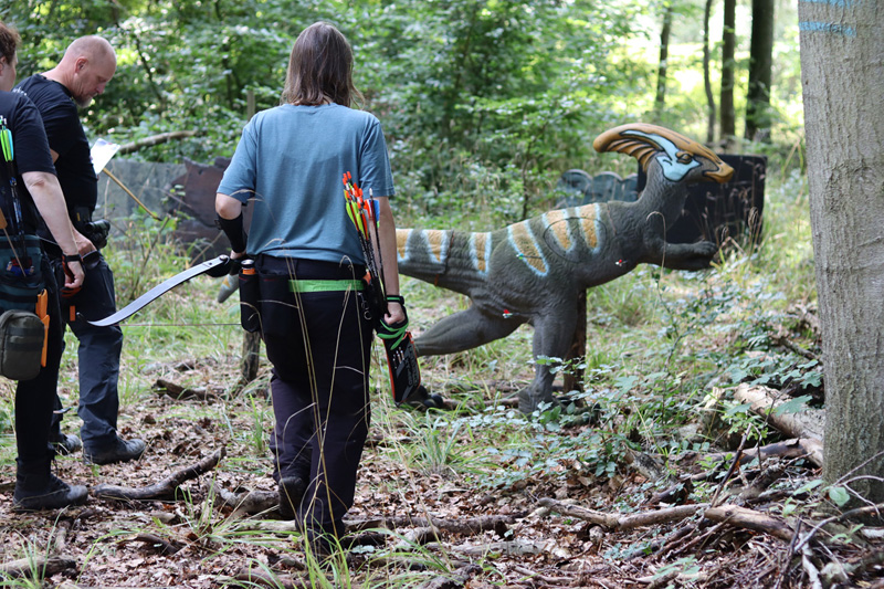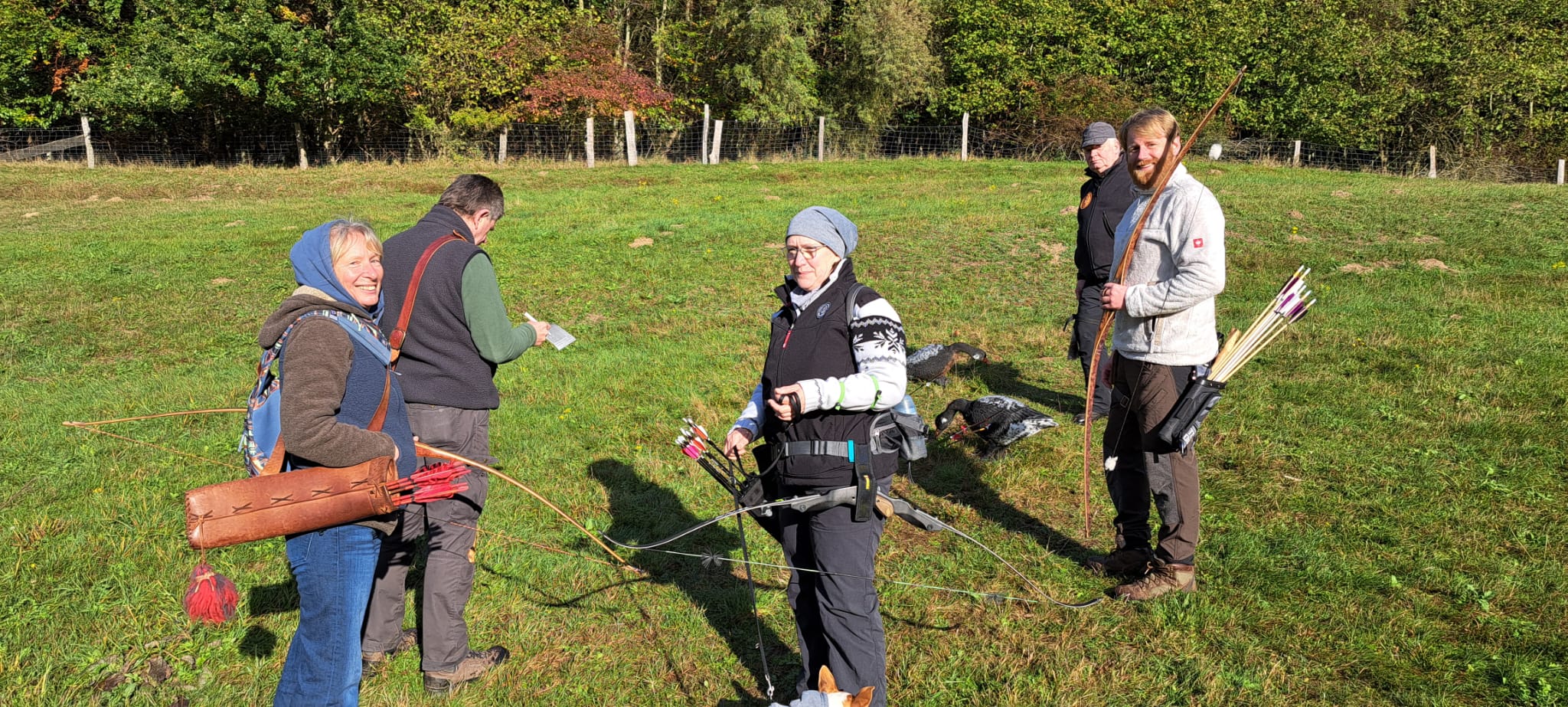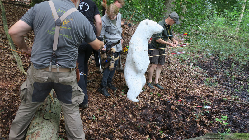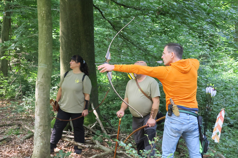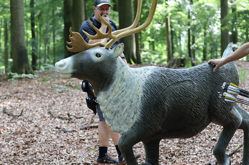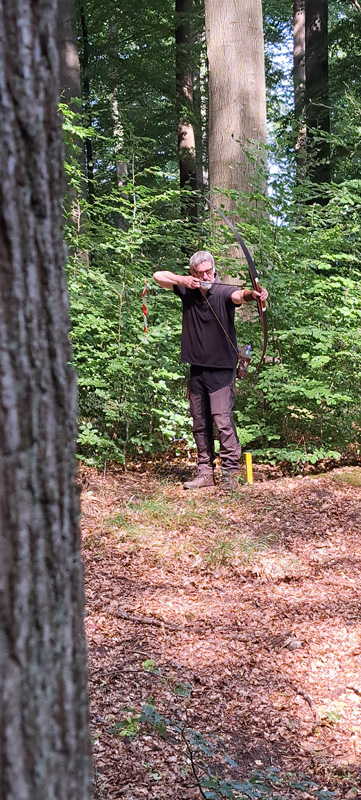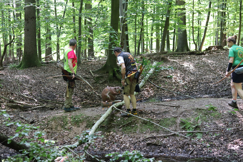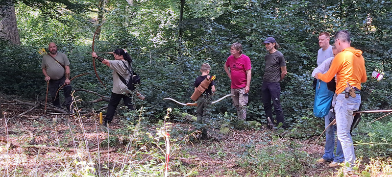 Für etwa die Hälfte der WuldoranerInnen war der Parcours, der nach privater Initiative im Frühjahr 2025 eröffnet wurde, „Neuland“. Zunächst ging es zur 3-Pfeil-Runde mit 25 Stationen, die - eingebettet in ein tolles, abwechslungsreiches Gelände mit wunderschönem Wald - alle durchweg begeistert haben. Schon bald soll die Nehmtener Runde noch weiter ausgebaut werden, denn ein ganzes Rudel neuer Tiere wartet nur darauf, in den Parcours gebracht zu werden. Nachdem die vier Gruppen ihre Runde gedreht hatten, versammelten sich alle für ein paar Spaßziele (Bogendarts, Pyramide 1-5, Rechenaufgabe und Enge Passe) noch einmal auf dem Einschießplatz.