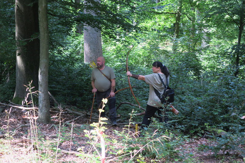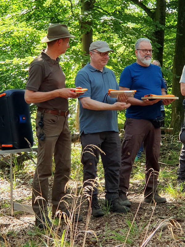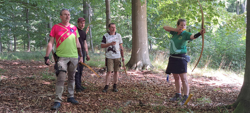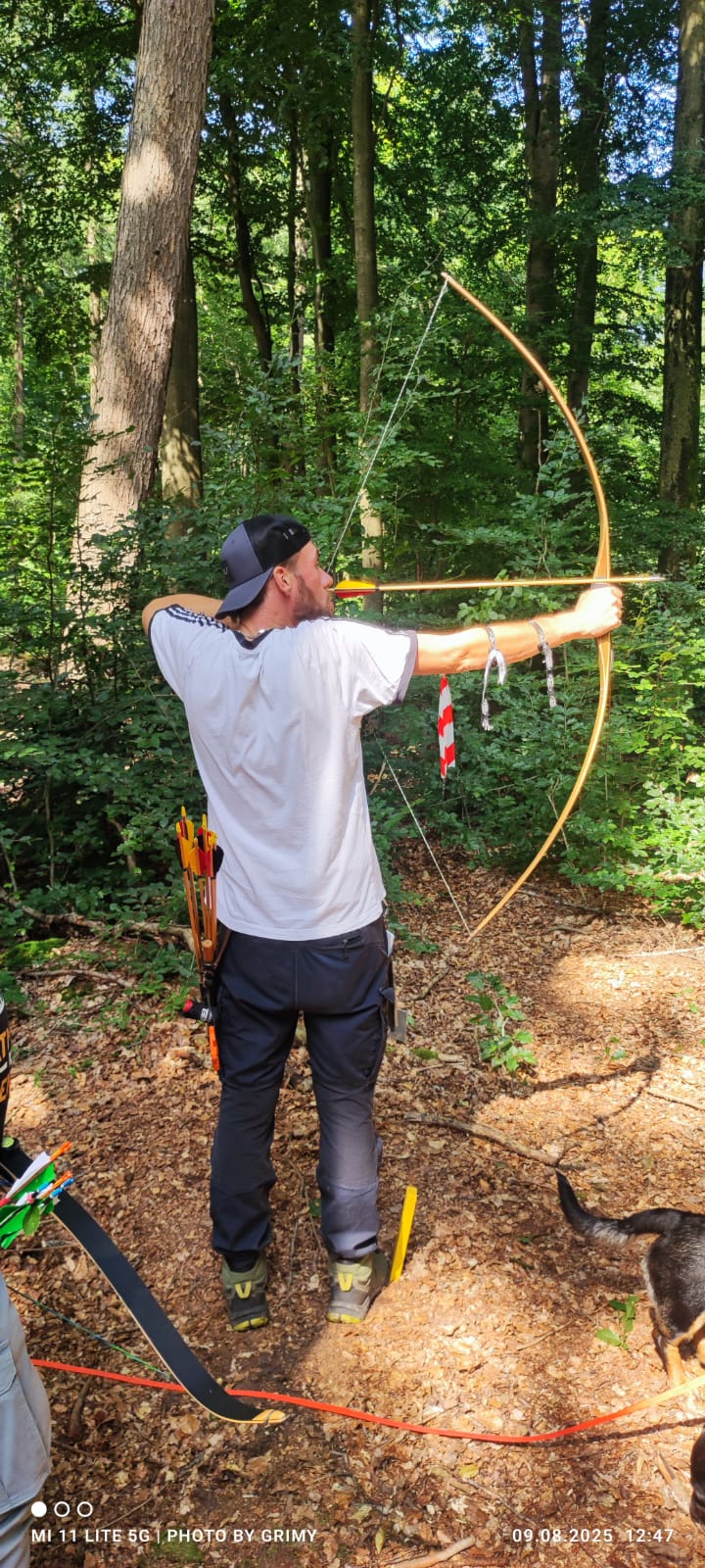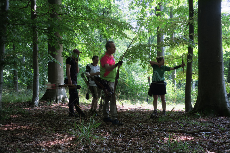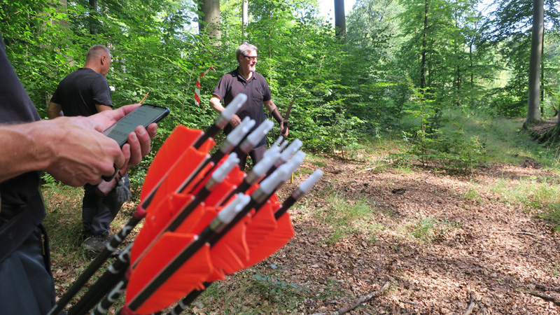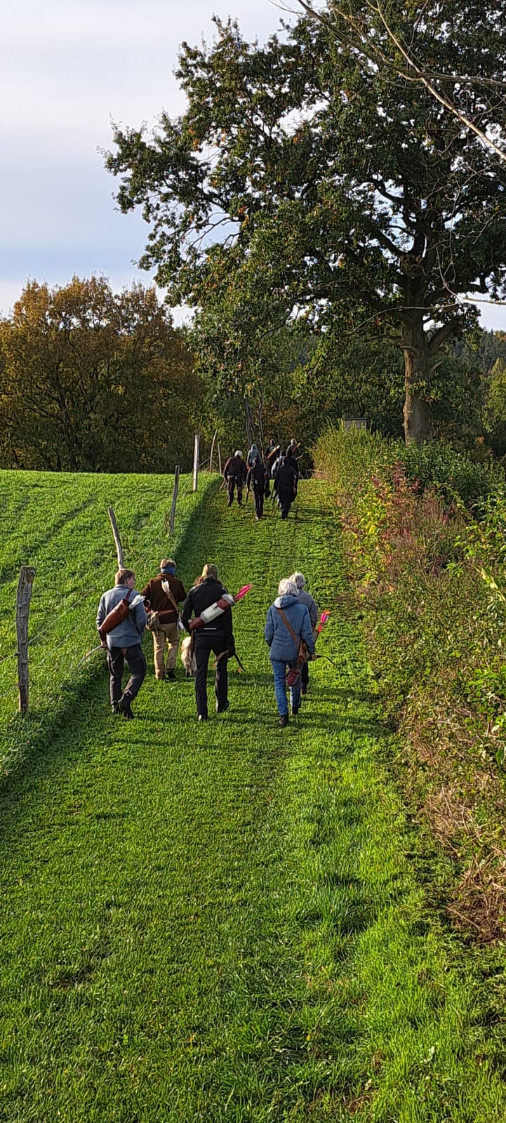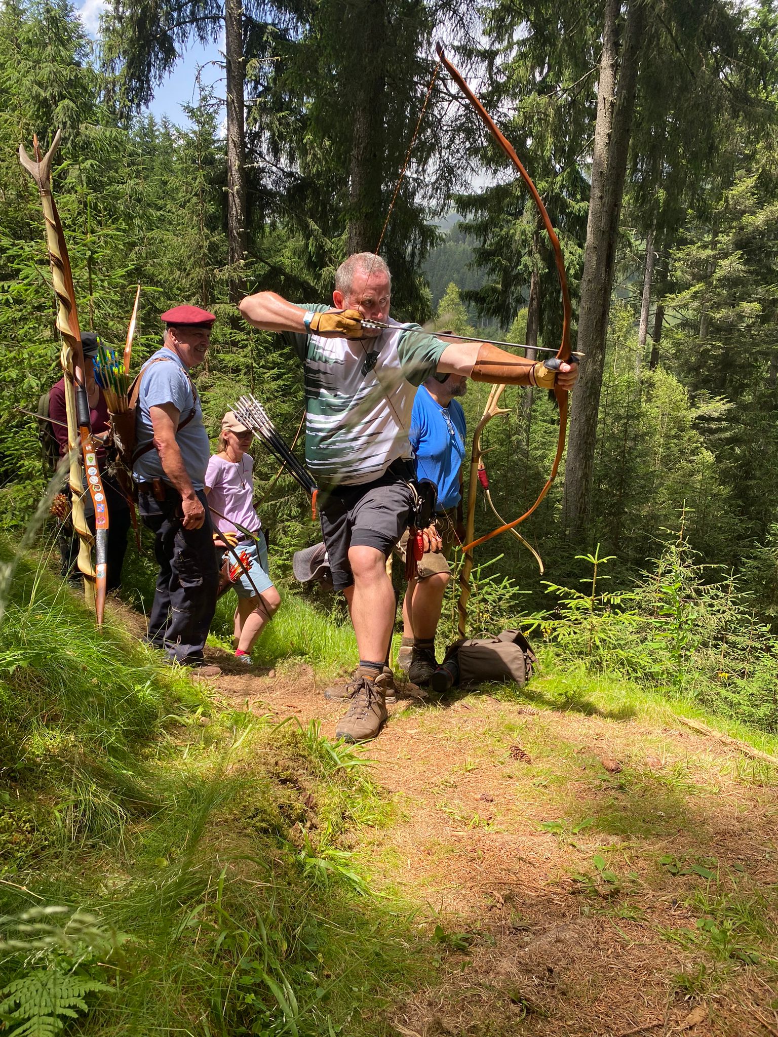 Für etwa die Hälfte der WuldoranerInnen war der Parcours, der nach privater Initiative im Frühjahr 2025 eröffnet wurde, „Neuland“. Zunächst ging es zur 3-Pfeil-Runde mit 25 Stationen, die - eingebettet in ein tolles, abwechslungsreiches Gelände mit wunderschönem Wald - alle durchweg begeistert haben. Schon bald soll die Nehmtener Runde noch weiter ausgebaut werden, denn ein ganzes Rudel neuer Tiere wartet nur darauf, in den Parcours gebracht zu werden. Nachdem die vier Gruppen ihre Runde gedreht hatten, versammelten sich alle für ein paar Spaßziele (Bogendarts, Pyramide 1-5, Rechenaufgabe und Enge Passe) noch einmal auf dem Einschießplatz.