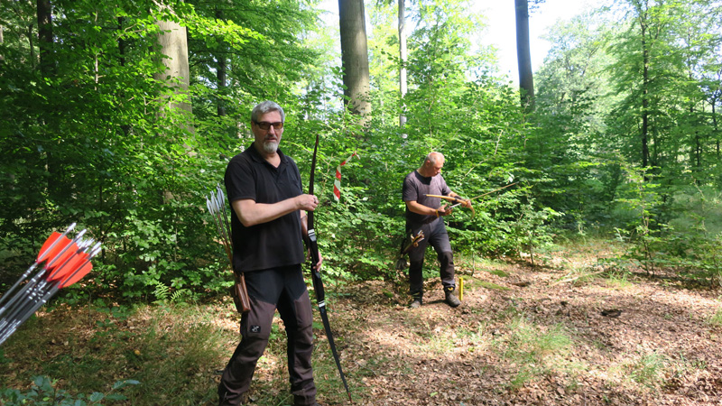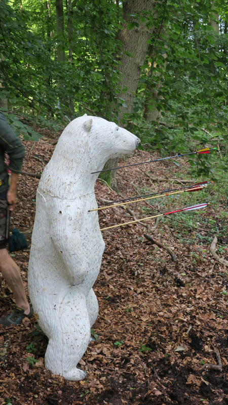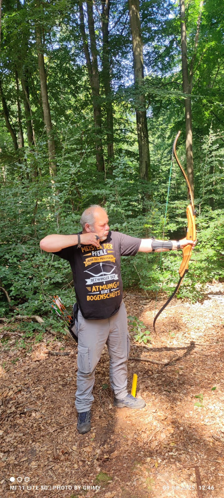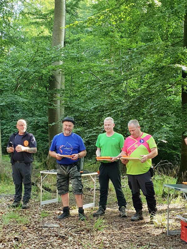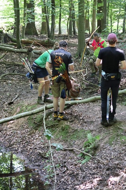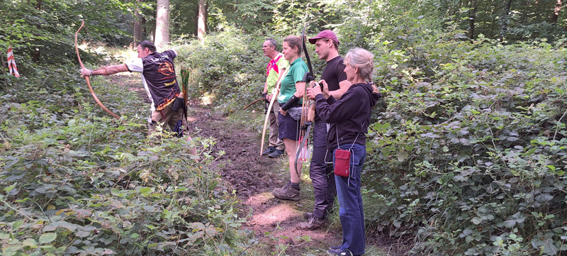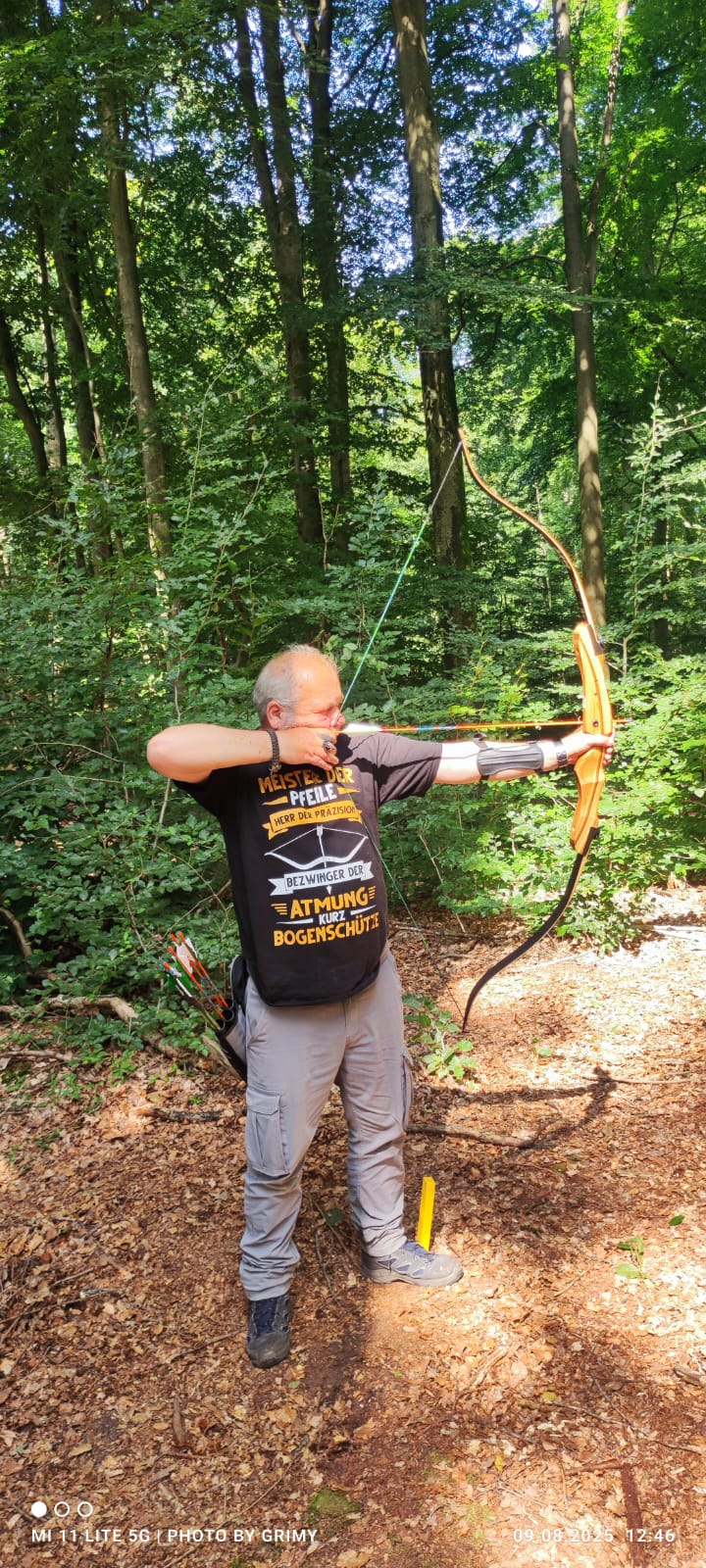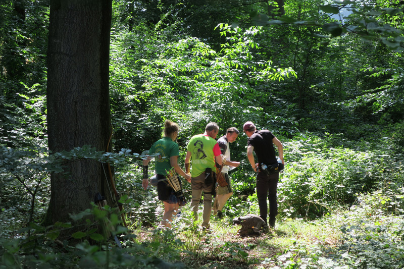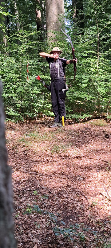 Für etwa die Hälfte der WuldoranerInnen war der Parcours, der nach privater Initiative im Frühjahr 2025 eröffnet wurde, „Neuland“. Zunächst ging es zur 3-Pfeil-Runde mit 25 Stationen, die - eingebettet in ein tolles, abwechslungsreiches Gelände mit wunderschönem Wald - alle durchweg begeistert haben. Schon bald soll die Nehmtener Runde noch weiter ausgebaut werden, denn ein ganzes Rudel neuer Tiere wartet nur darauf, in den Parcours gebracht zu werden. Nachdem die vier Gruppen ihre Runde gedreht hatten, versammelten sich alle für ein paar Spaßziele (Bogendarts, Pyramide 1-5, Rechenaufgabe und Enge Passe) noch einmal auf dem Einschießplatz.