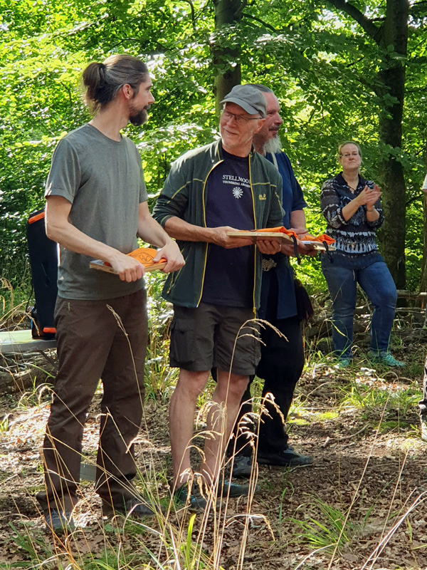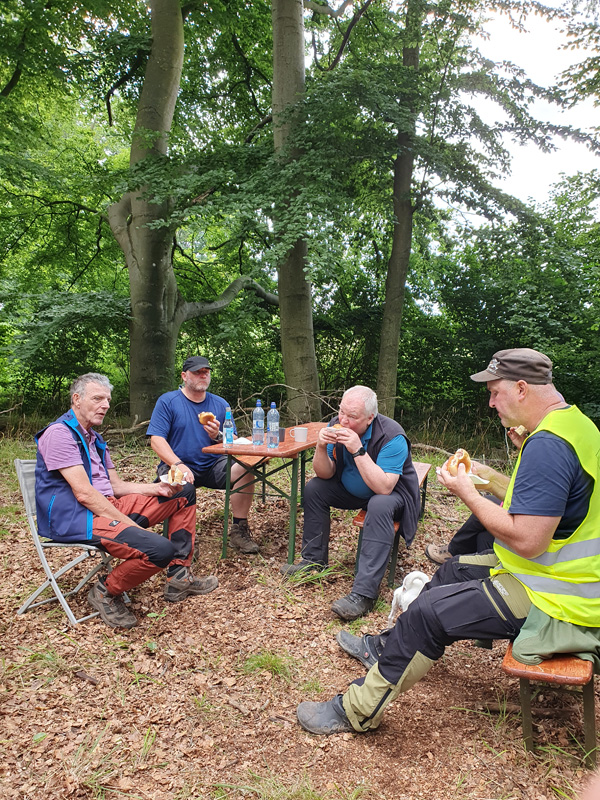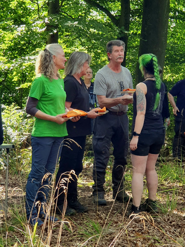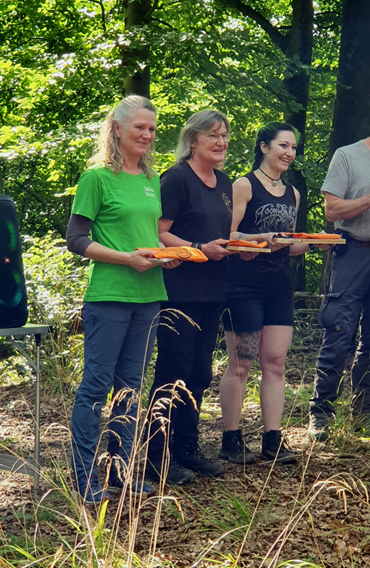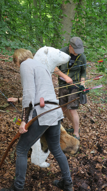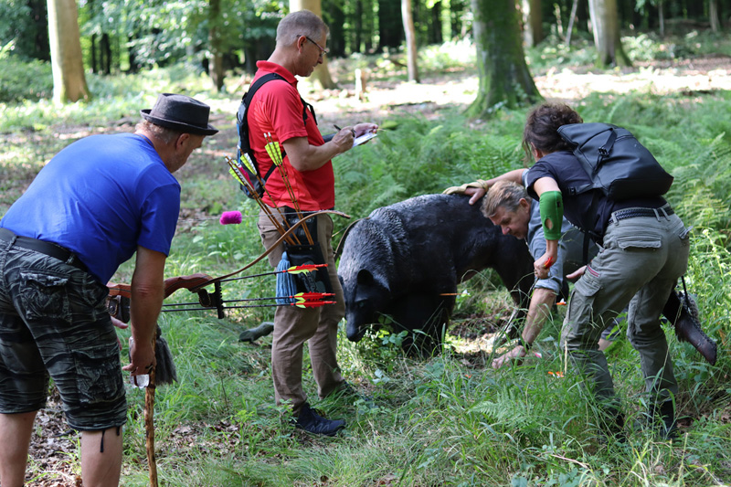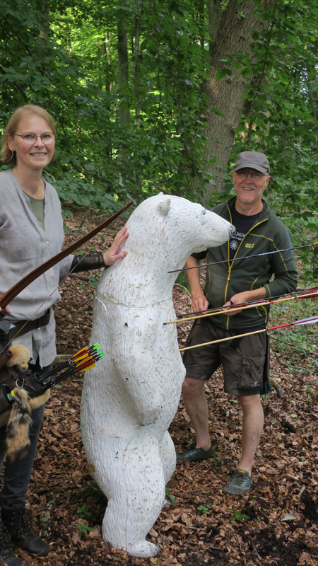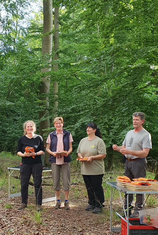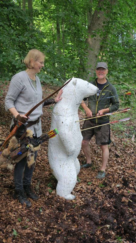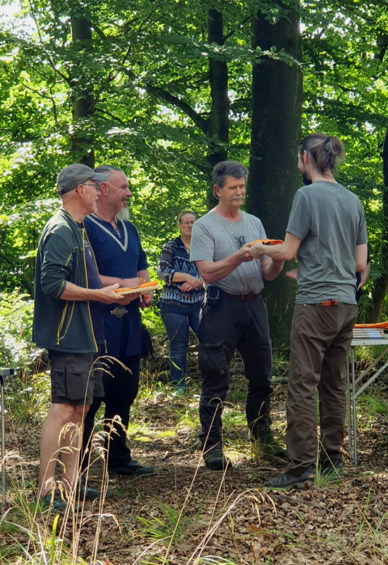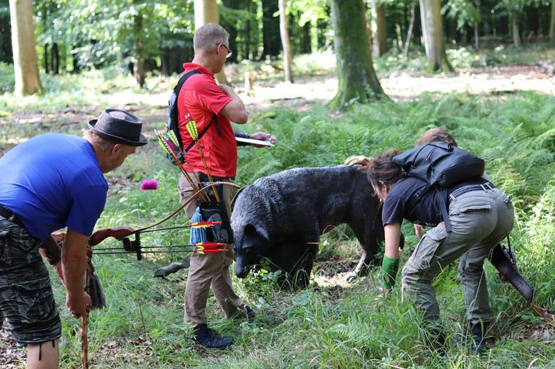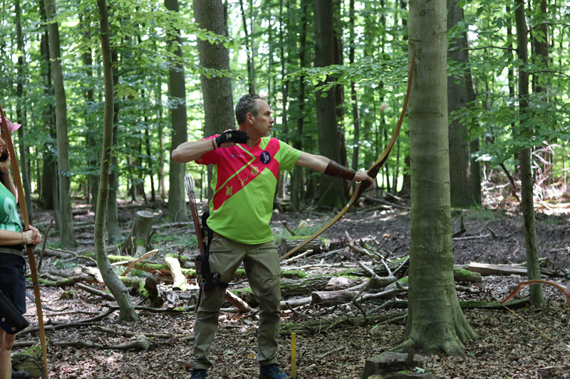 Für etwa die Hälfte der WuldoranerInnen war der Parcours, der nach privater Initiative im Frühjahr 2025 eröffnet wurde, „Neuland“. Zunächst ging es zur 3-Pfeil-Runde mit 25 Stationen, die - eingebettet in ein tolles, abwechslungsreiches Gelände mit wunderschönem Wald - alle durchweg begeistert haben. Schon bald soll die Nehmtener Runde noch weiter ausgebaut werden, denn ein ganzes Rudel neuer Tiere wartet nur darauf, in den Parcours gebracht zu werden. Nachdem die vier Gruppen ihre Runde gedreht hatten, versammelten sich alle für ein paar Spaßziele (Bogendarts, Pyramide 1-5, Rechenaufgabe und Enge Passe) noch einmal auf dem Einschießplatz.