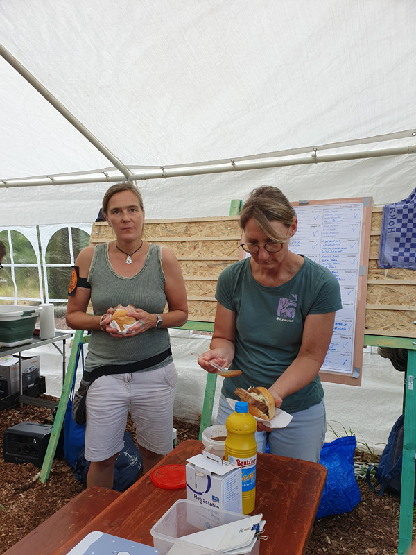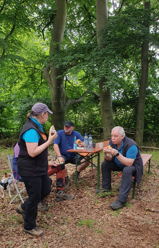 Spätestens danach meldete sich aber der Hunger in der Runde und durch den kalten Wind auf dem Einschießplatz waren alle auch ein wenig durchgefroren. Freddy Schramm (Danke nochmal!) hatte mittlerweile schon den Grill angeworfen und neben den sehr leckeren Wildbratwürstchen vom „Grafen“ und ein bisschen Veggie-Food schmeckten auch die vielen, leckeren Beiträge vom Mitbringbuffet hervorragend.