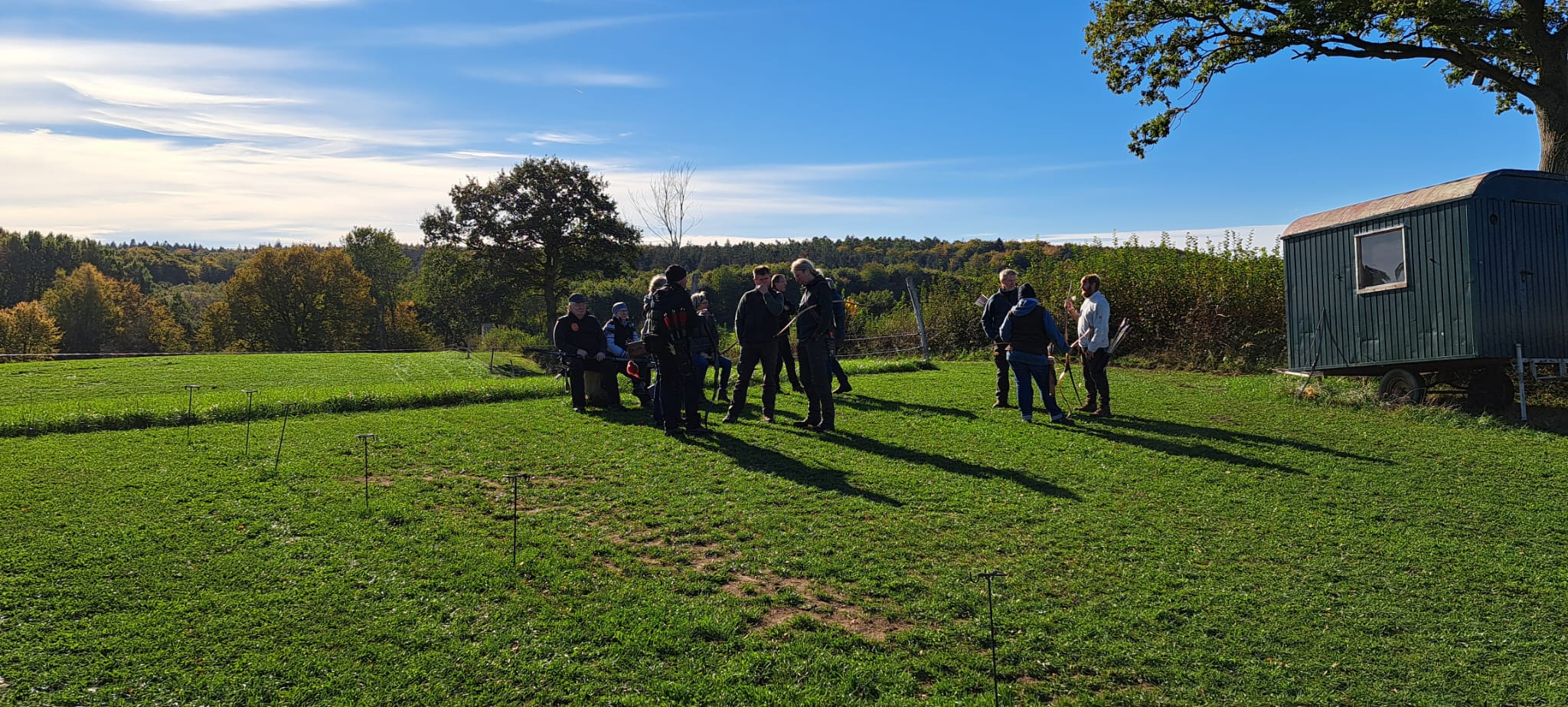 Der Einladung zum Vereinsausflug der Bogenfreunde Wuldor waren 22 Schützinnen und Schützen gefolgt und trafen sich am Sonntag, 19. Oktober morgens bei knackigen Temperaturen nur wenige Grad über dem Gefrierpunkt auf dem noch recht neuen Bogenparcours Nehmten am Großen Plöner See. Doch die Sonne meinte es gut mit uns, schickte fortan wärmende Strahlen und bescherte uns einen schönen Tag mit herrlichem Licht.